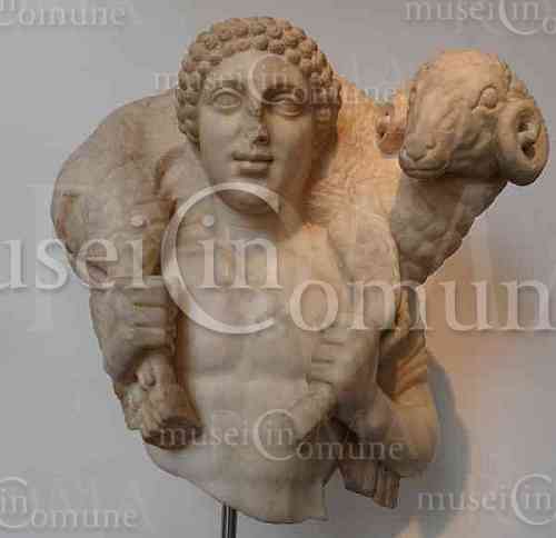 , statua frammentaria di hermes con ariete