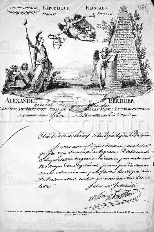 ID foto: 5693 Soggetto: Carta intestata del generale Berthier con figure mitologiche e città sul fondo