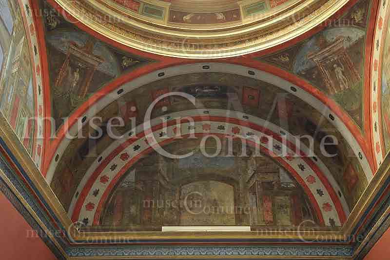 ID foto: 6426 Soggetto: Teatro di Villa Torlonia, Appartamento Ovest, Salone Foyer, lunetta con episodi della Guerra di Troia, tratti dall'Iliade (forse L'ingreso del cavallo di legno in Troia), e architetture dipinte