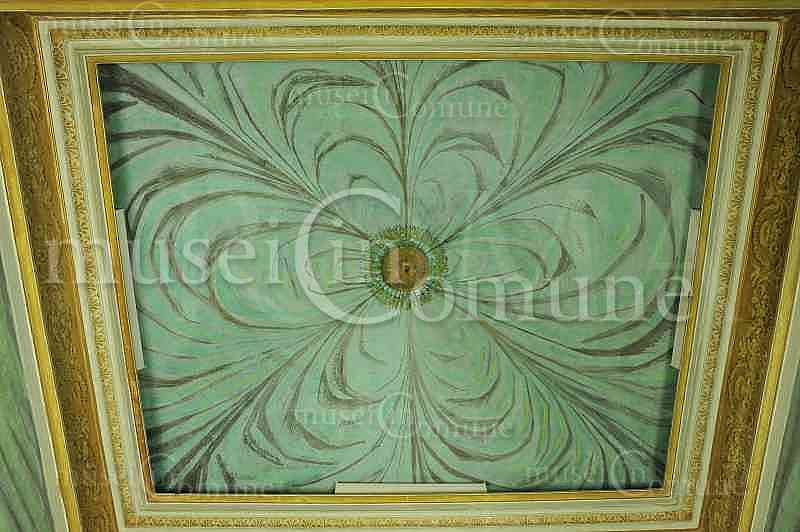 , volta del disimpegno con finti tendaggi verdi