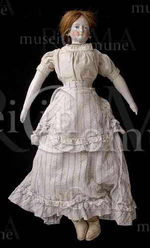 Materiali: Bisquit (testa); porcellana (braccia), pelle (corpo)