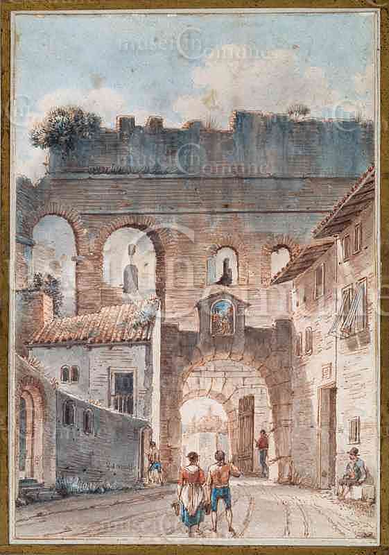 Porta Pinciana con edicola sacra e tratto delle Mura Aureliane