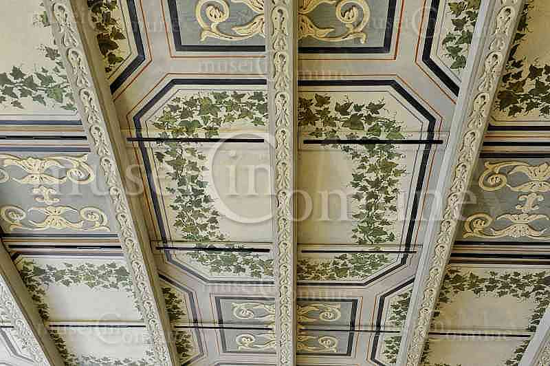 , particolare del cassettonato dipinto a motivi vegetali