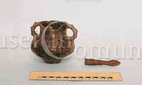 ID foto: 3023 Soggetto/Subject: Anforetta e punta di giavellotto, rinvenuti nella tomba 10 / Little amphora and a top of a javelin, both discovered in the tomb number 10