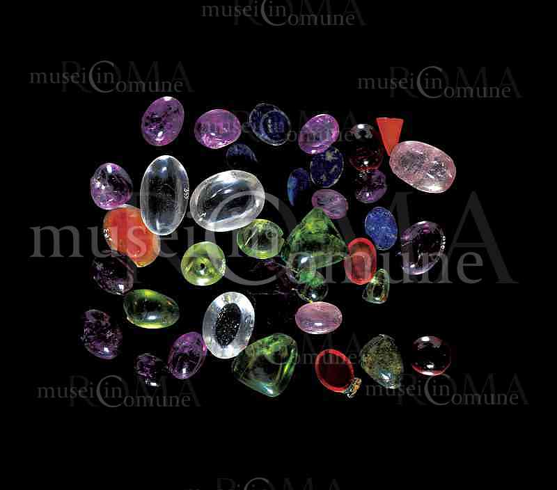 ID foto: 4093 Soggetto/Subject: Horti Lamiani: cristalli di rocca, ametiste, corniole, peridoti e lapislazzuli / Horti Lamiani: rock crystals, amethysts, carnelians, peridots and lapis lazulis