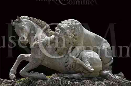 Gruppo con leone che azzanna un cavallo