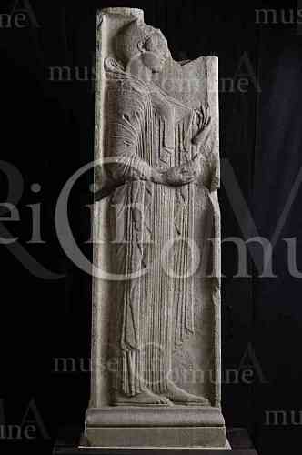 stele funeraria di giovinetta con colomba