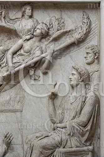 Particolari del Rilievo dall'Arco di Portogallo Adriano assiste all'apoteosi di Sabina